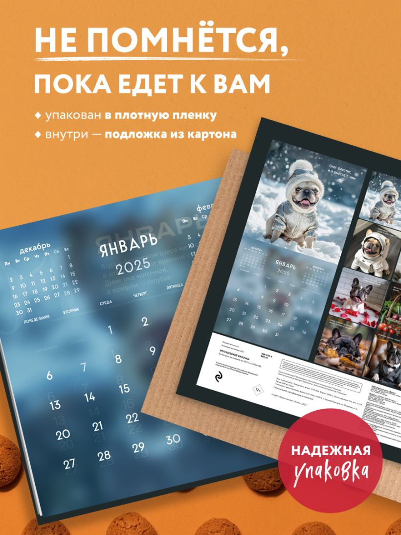 Забавный календарь с милыми французскими бульдогами, чьи изображения родились благодаря нейросети.