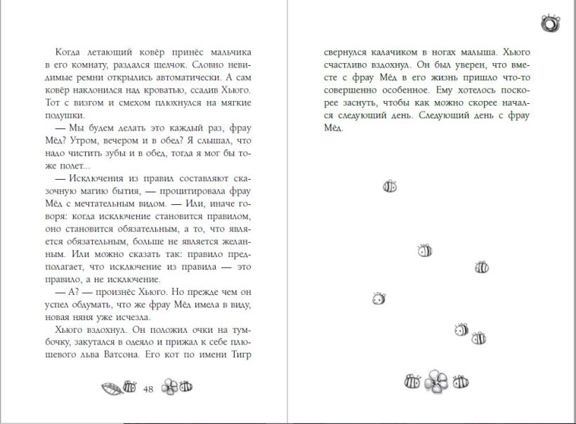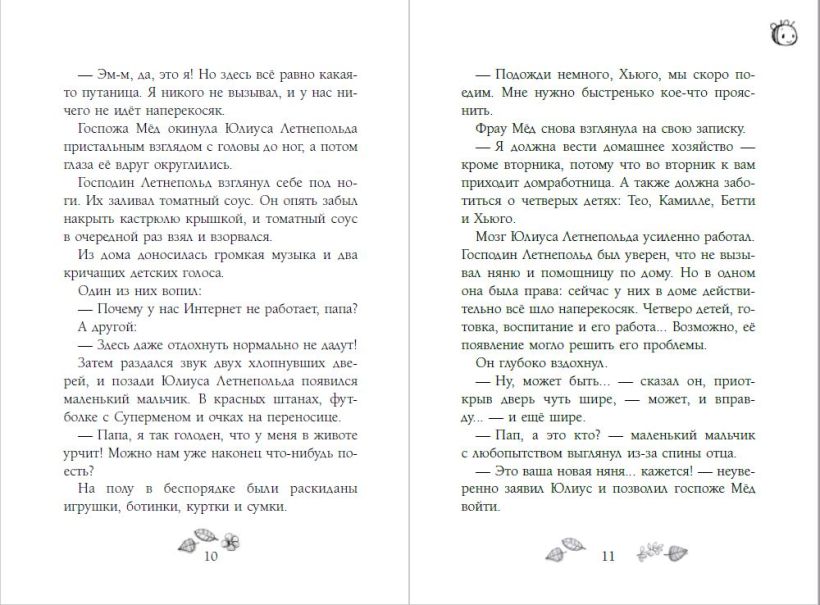 Хотите полетать на ковре-самолёте? Подружиться с монстром из ночных кошмаров? Стать увереннее в себе и не думать о том, что о вас говорят одноклассники? Очутиться в волшебном мире, который спрятан прямо посреди улицы, у всех под ногами? С фрау Мёд нет ничего невозможного! Однажды эта необычная няня появилась на пороге домика Летнепольдов, где живёт целых четыре ребёнка, и принесла с собой полный чемодан чудес и приключений… Готовы узнать, каких?