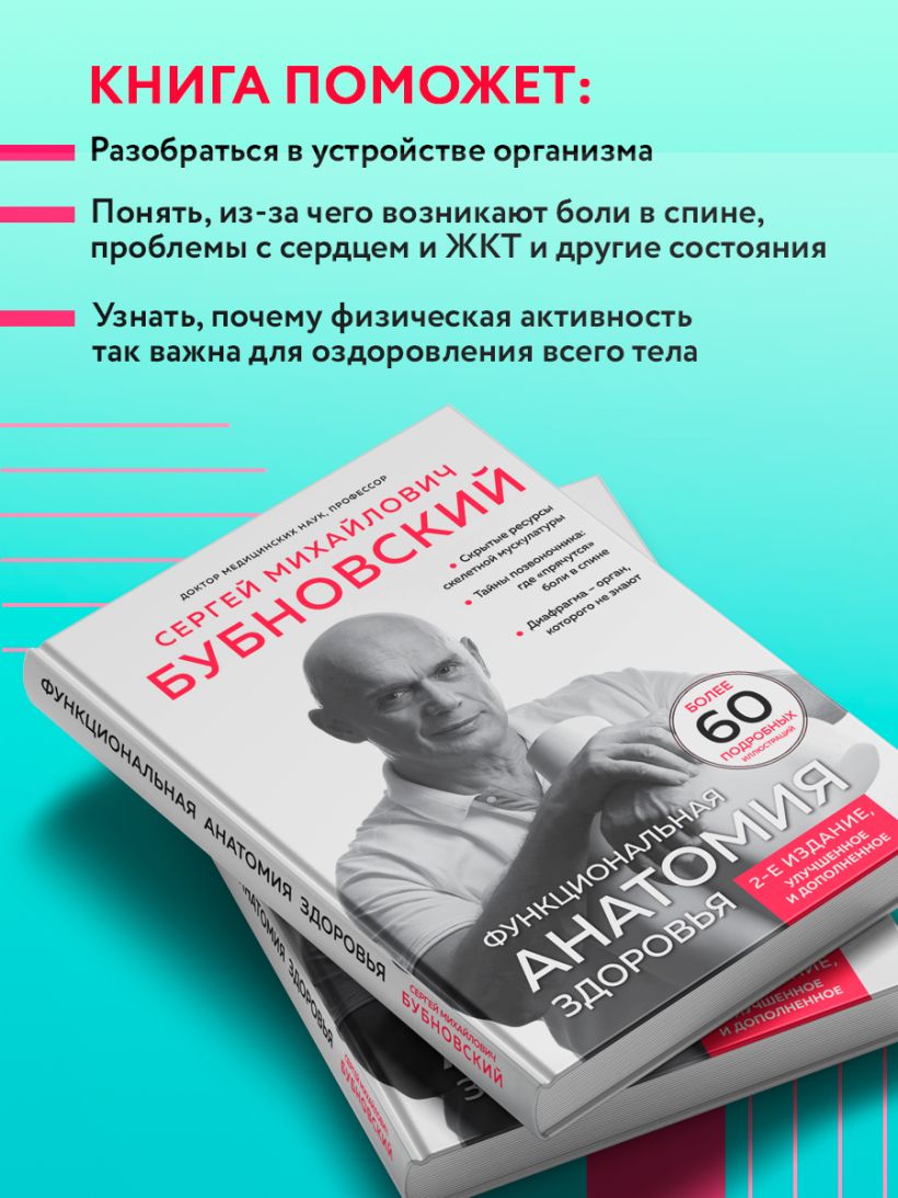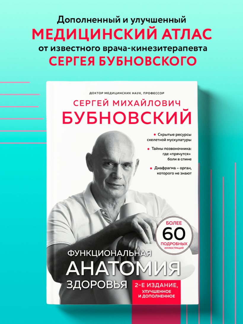 Новая книга доктора Бубновского — это практический медицинский атлас, объясняющий самые важные особенности нашего организма. Благодаря системам и знаниям, с которыми предлагает ознакомиться автор, вы станете на шаг ближе к осознанным отношениям со своим телом, избавитесь от боли и поймете, как заниматься «умным» фитнесом.