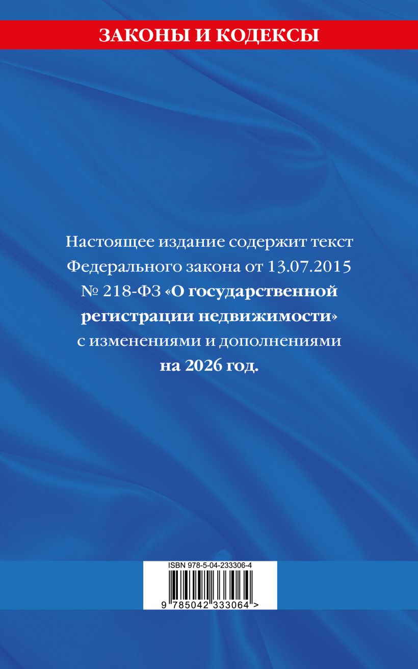 Настоящее издание содержит текст Федерального закона от 13.07.2015 № 218-ФЗ "О государственной регистрации прав на недвижимое имущество и сделок с ним" с изменениями и дополнениями на 2026 год.