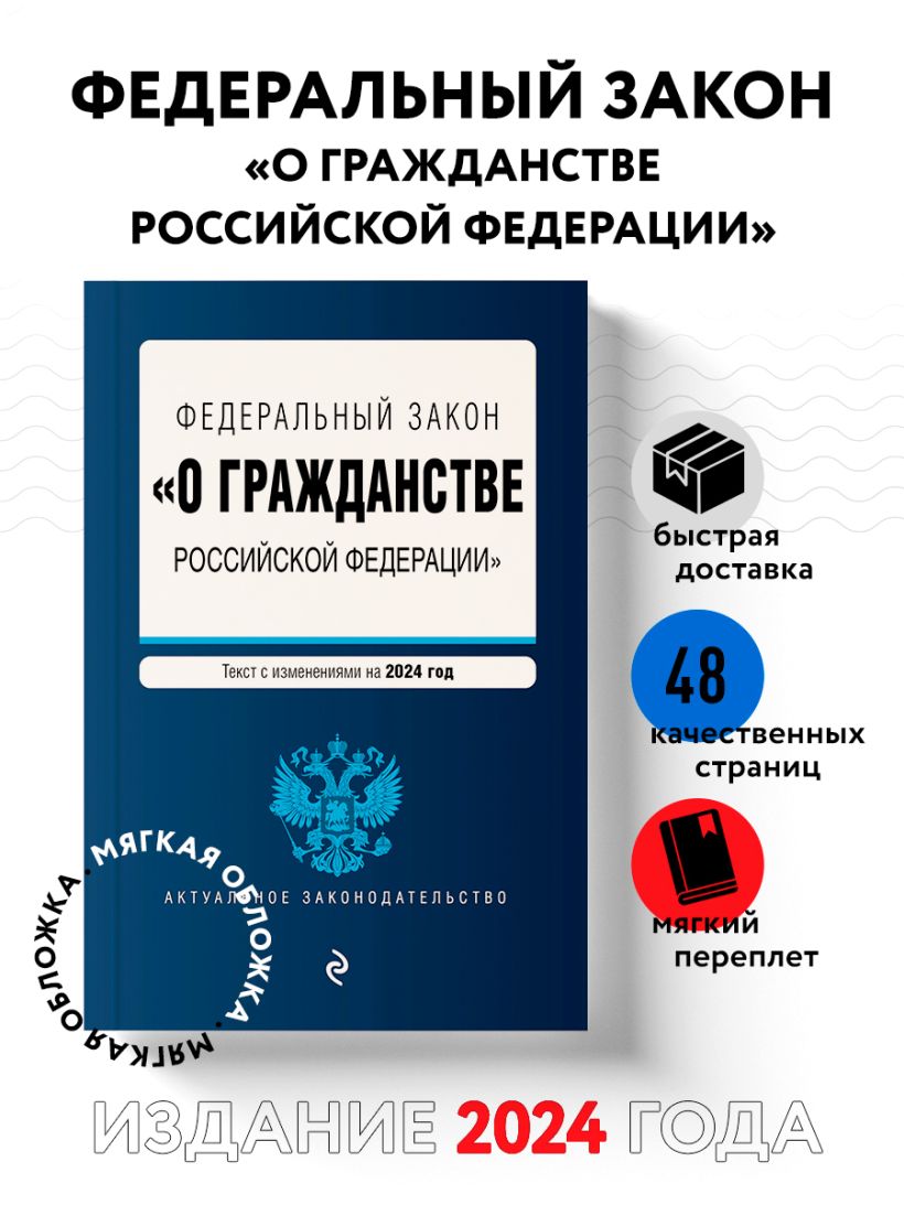 Настоящее издание содержит текст Федерального закона от 31.05.2002 N 62-ФЗ "О гражданстве Российской Федерации" с изменениями и дополнениями на 2024 год.