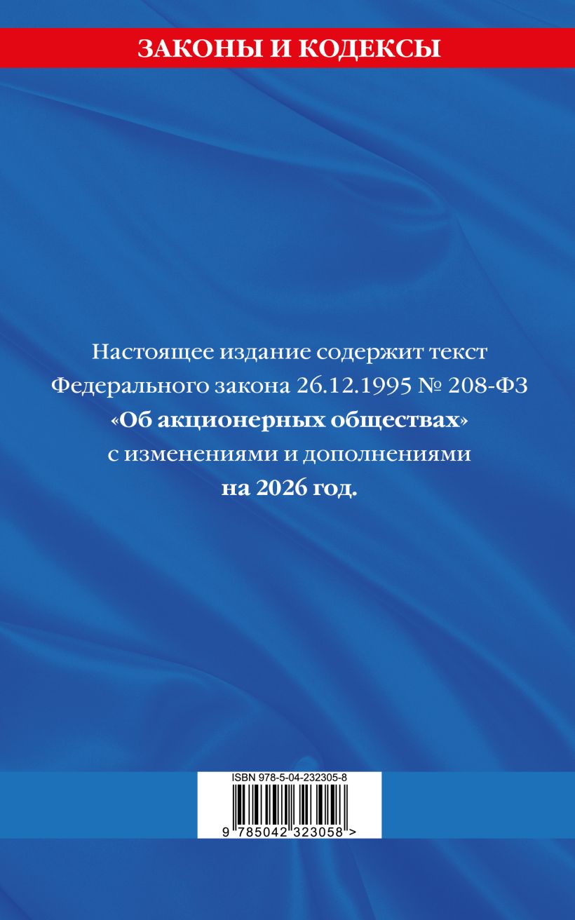 Настоящее издание содержит текст Федерального закона 26.12.1995 № 208-ФЗ «Об акционерных обществах» с изменениями и дополнениями на 2026 год. .