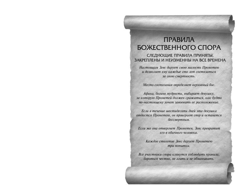 Правила божественного спора: каждые сто лет Прометей состязается за право стать смертным. Афина выбирает девушку, за чье сердце он должен сразиться. Так начнется игра. Вот только нужна ли ему будет победа такой ценой?