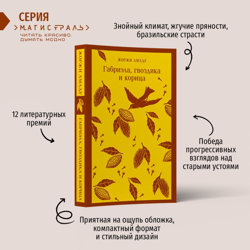 Роман «Габриэла» вышел в Бразилии в 1958 году и произвел эффект взорвавшейся бомбы. За две недели было продано 20 000 экземпляров, а за год — 120 000 экземпляров книги. На русском роман издан в 1961 году, и, по словам Ильи Эренбурга — друга Амаду: «"Габриэлу" читают у нас, не отрываясь от книги».