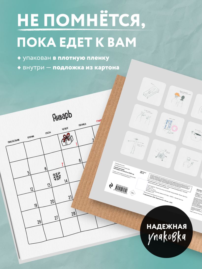 Календарь Татьяны Мужицкой с яркими иллюстрациями от Влады Коваль! В сетке — вдохновляющие цитаты автора и необычные праздники вроде «Всемирного дня “Спасибо”» и «Международного дня заботы о себе». Каждый месяц — как напоминание: жить можно с радостью, легкостью и любовью к себе. Совокупный тираж книг Татьяны Мужицкой — 360 000 экземпляров. Наши настенные календари отличаются высоким качеством исполнения! Тщательно подобранные иллюстрации, напечатанные на глянцевой бумаге высочайшего качества, станут настоящим украшением дома, а в календарной сетке найдется место для ваших планов: большие клетки позволят делать записи и организовать свой год! В серии настенных календарей издательства «ЭКСМО» каждый найдет тему по вкусу: великие художники, великолепные подборки с самыми знаменитыми произведениями искусства, легендарные кинематографические саги и игры, главные книжные авторы и бестселлеры, фотографии и иллюстрации любимых животных и многое-многое другое! Технические параметры: - Тип календаря — настенный перекидной. - Год — 2026. - Календарная сетка — с разбивкой по месяцам. - Вид скрепления — скрепка. - Ширина — 30 см. - Высота — 30 см. - Внутренний блок — мелованная бумага 150 г/м2. - Подложка — плотный гофрокартон для поддержания формы. - Индивидуальная упаковка в плотный целлофановый пакет.