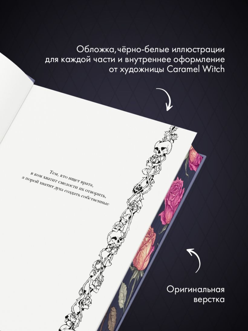 Цветной обрез, чёрно-белые иллюстрации для каждой части и внутреннее оформление от художницы Caramel Witch.