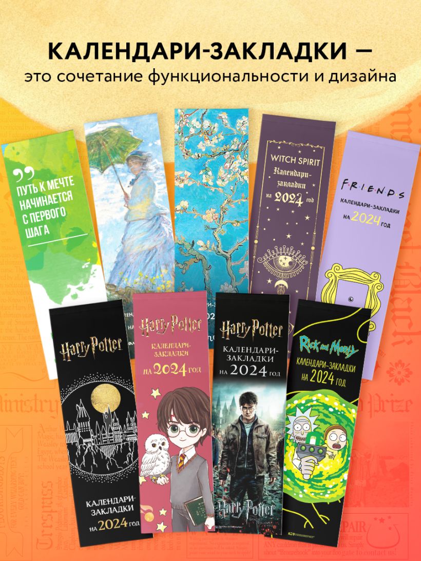 Гарри Поттер. Календари-закладки на 2024 год (12 шт., на перфорации, арты)