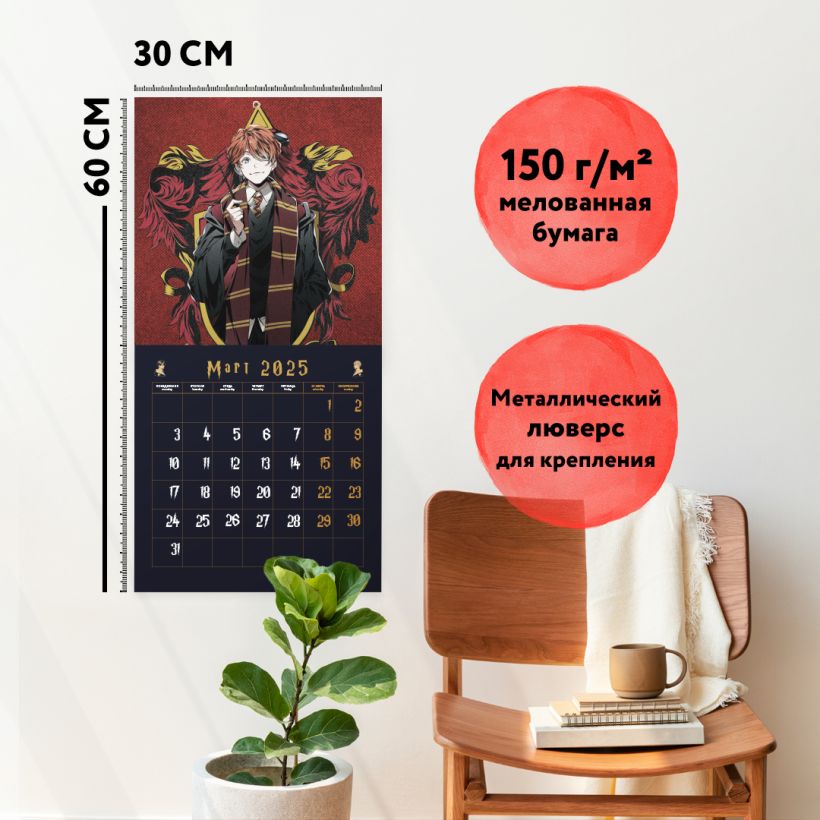 Календарь с 12 очаровательными иллюстрациями в стиле аниме по всем любимой магической вселенной! Отличное полиграфическое исполнение и удобная сетка, в которой отмечены все государственные праздники — все это будет дарить вам такие незабываемые эмоции каждый день, что вы не заметите, как пролетит целый год! Отличный подарок себе и друзьям!