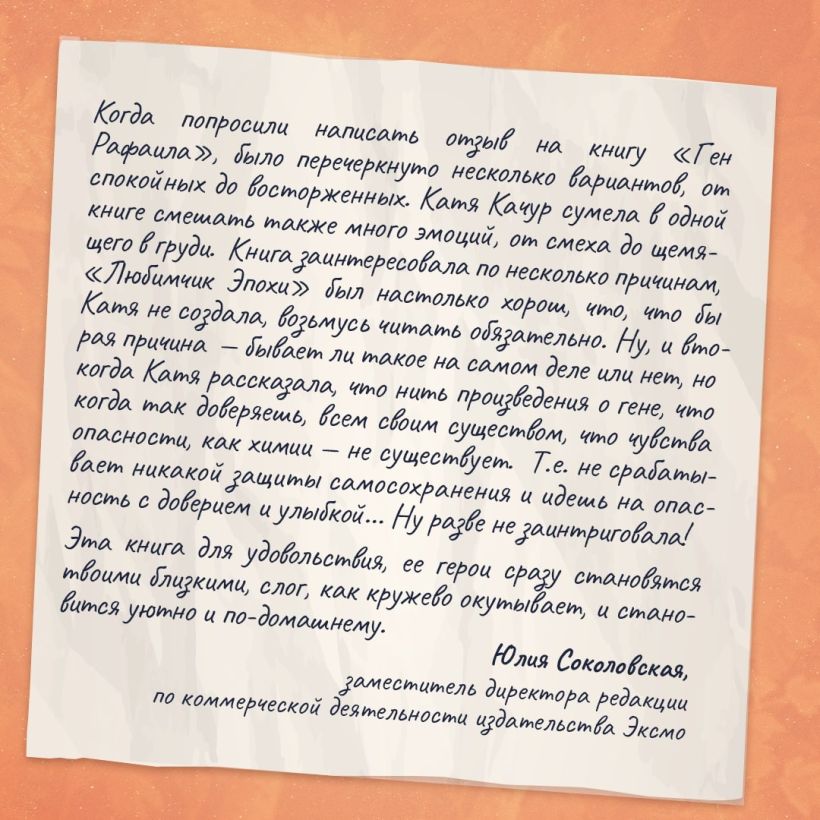 Буду ли я рекомендовать «Ген Рафаила»? Конечно! Но, если вы натура нежная и ранимая, я бы посоветовала быть поосторожнее. Есть сцены, которые оставляют после себя неприятный осадок. Получилась бы книга без них? Думаю, вряд ли.