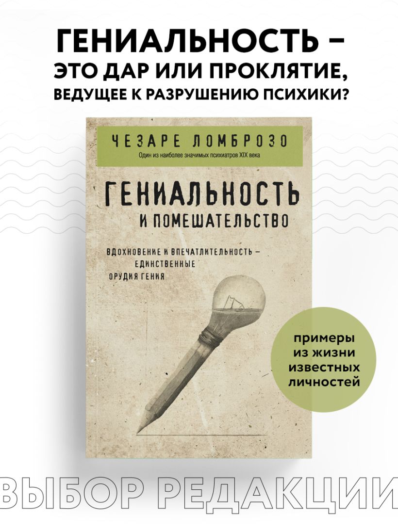 «Гениальность и помешательство» — главный и самый знаменитый труд Ломброзо. По его мнению, преступления совершают люди с набором определённых внешних данных и психологических характеристик. В своей работе Чезаре Ломброзо анализирует биографии известных личностей, пытаясь выявить общие черты и особенности их характера, а также рассматривает влияние наследственности, окружающей среды и других факторов на формирование гениальности и психических расстройств.