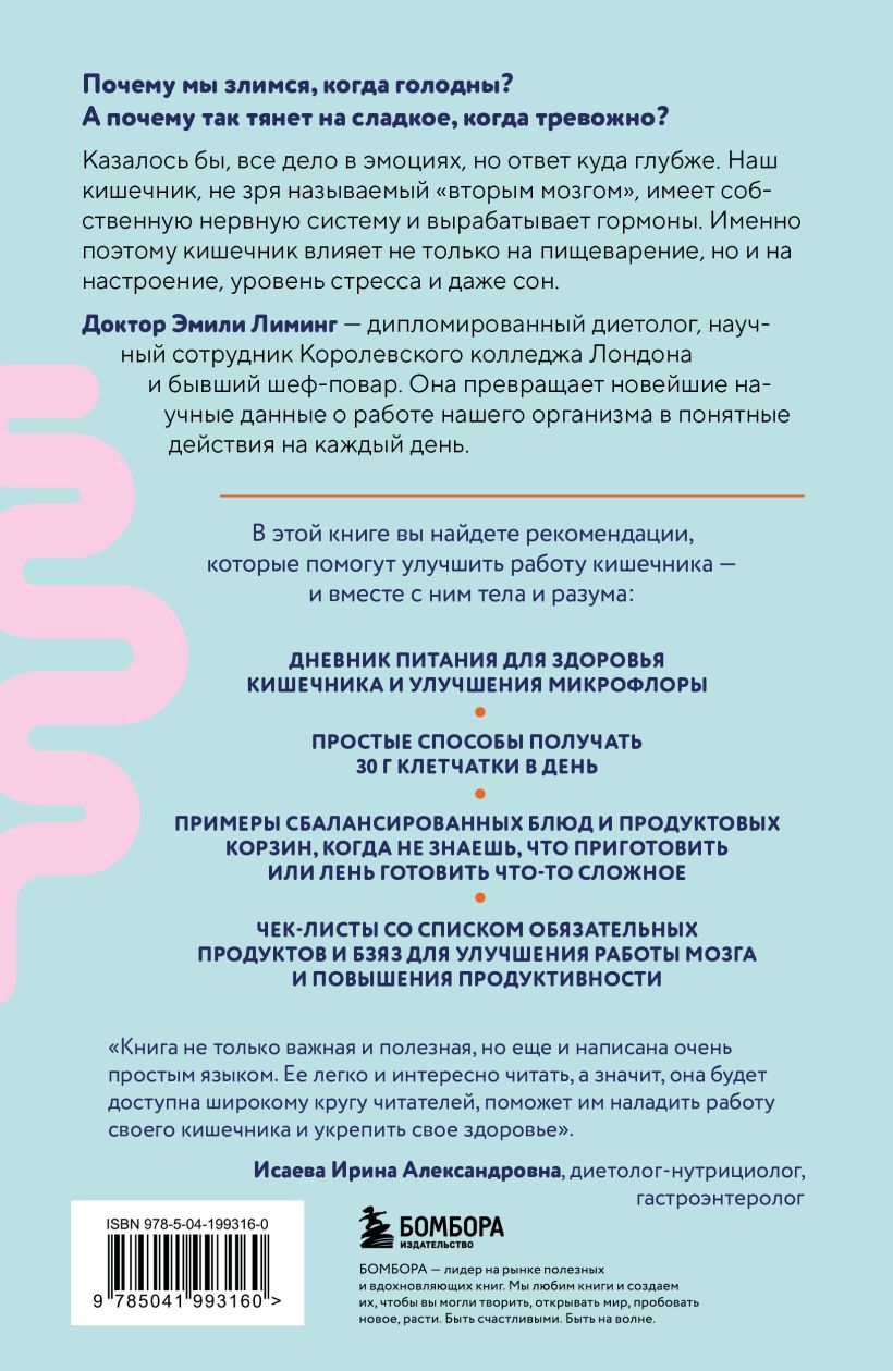 Автор — доктор Эмили Лиминг, дипломированный диетолог, научный сотрудник Королевского колледжа Лондона и бывший шеф-повар. Доктор Лиминг объясняет, как питание влияет на мозг и тело и как выстроить полезный рацион без жестких ограничений и срывов.