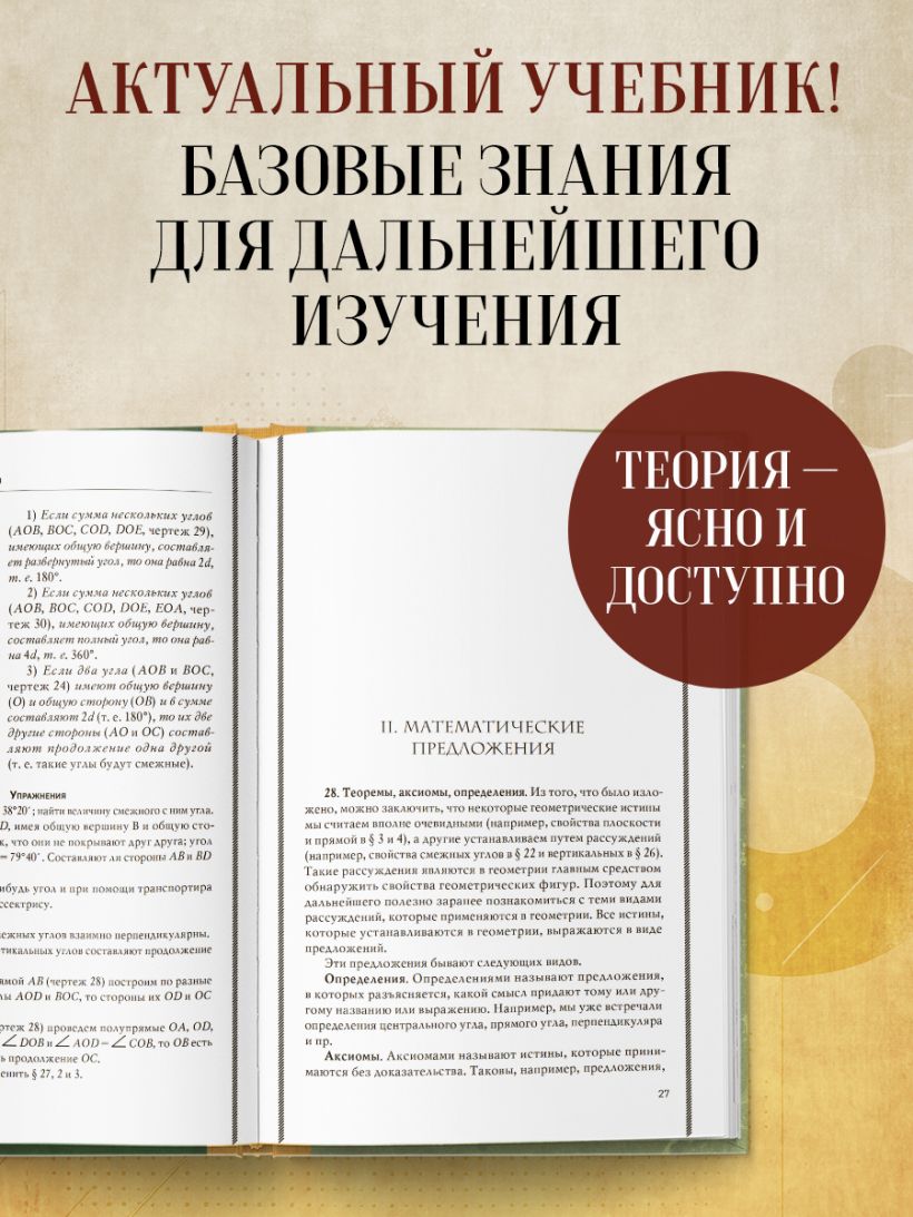 «Геометрия» Андрея Петровича Киселёва, так популярная в советской школе, актуальна и сейчас. Перед вами фундаментальный курс геометрии, охватывающий основные понятия и теоремы. Простой и понятный язык, базовые элементы геометрии, четкие конструкции и доказательства — вот отличительные особенности знаменитого учебника.