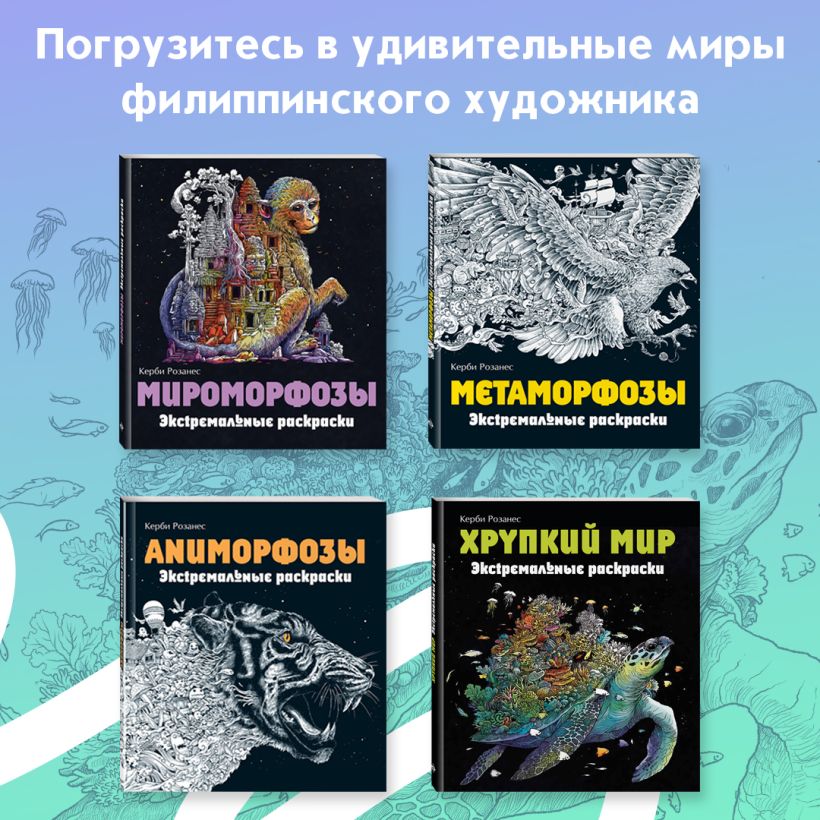Потрясающие фантазийные миры от покорившего наше воображение и полюбившегося всем фанатам раскрасок мастера тонких линий и рисунков высокой четкости Керби Розанеса!