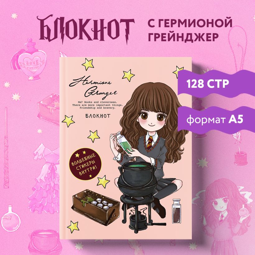 Блокнот. Гермиона Грейнджер. Коллекция «Cute kids» (А5, 64 л., цветной блок, со стикерами)