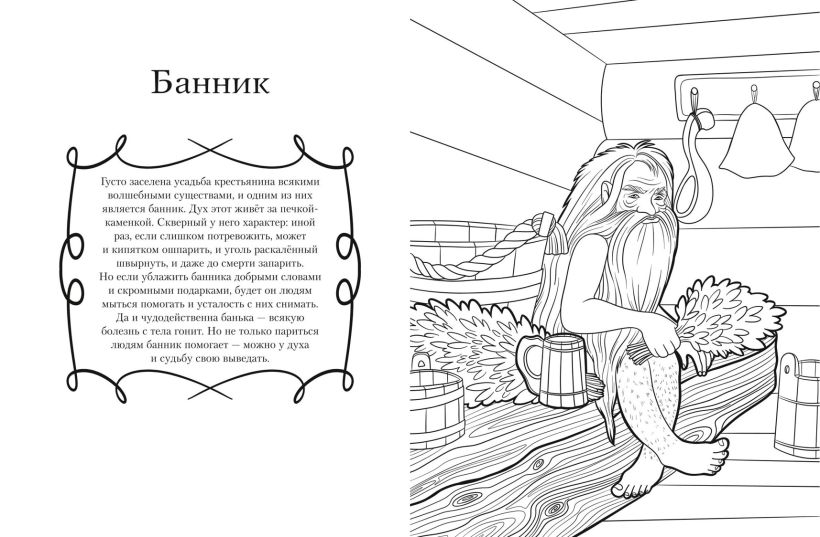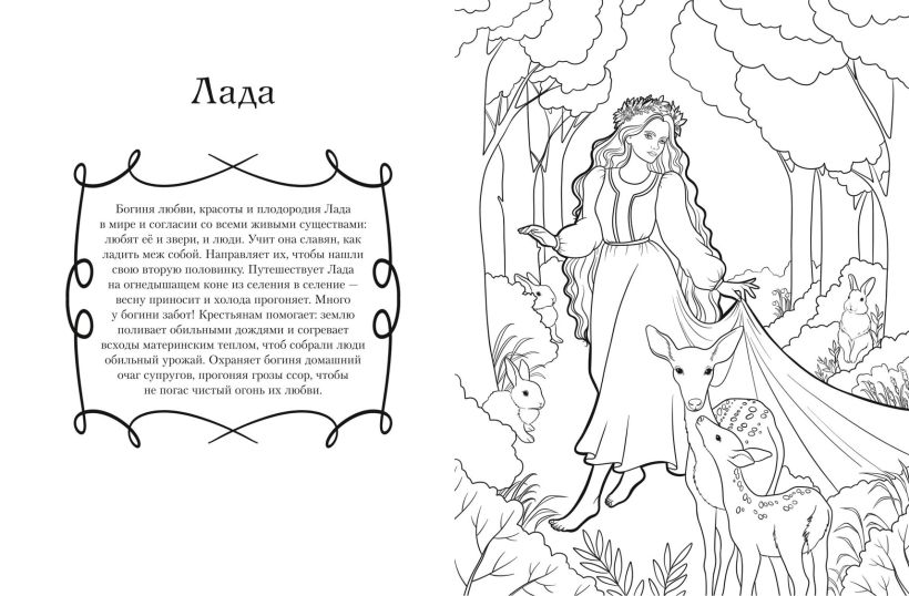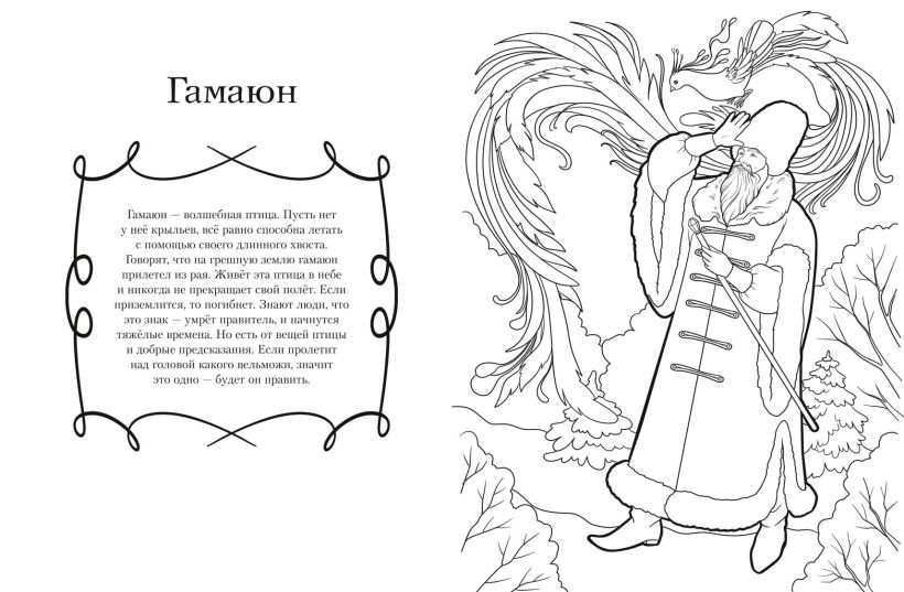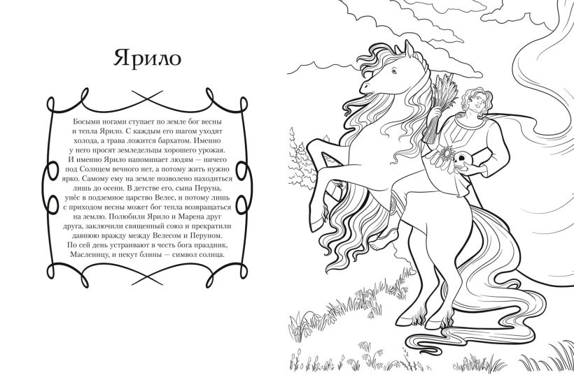 В этой раскраске вас ждёт встреча с самыми известными героями славянской мифологии от Перуна до кота Баюна. Боги, волшебные существа, люди и животные — раскрашивайте их и узнавайте интересные факты!