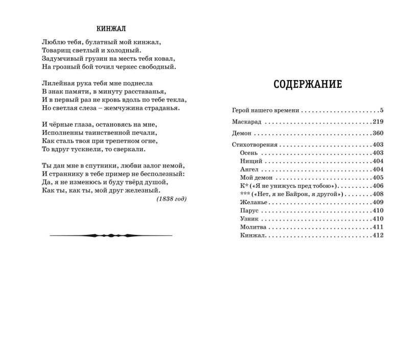 В настоящем издании публикуются произведения об известных лермонтовских героях: роман «Герой нашего времени», драма «Маскарад», поэма «Демон» и избранные стихотворения.