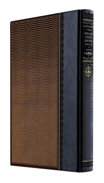 Гималаи, Сибирь, Америка: мои пути и дороги. Очерки, наброски, воспоминания. Книга в коллекционном кожаном переплете ручной работы из двух видов кожи с окрашенным и золоченым обрезом. Роза ветров