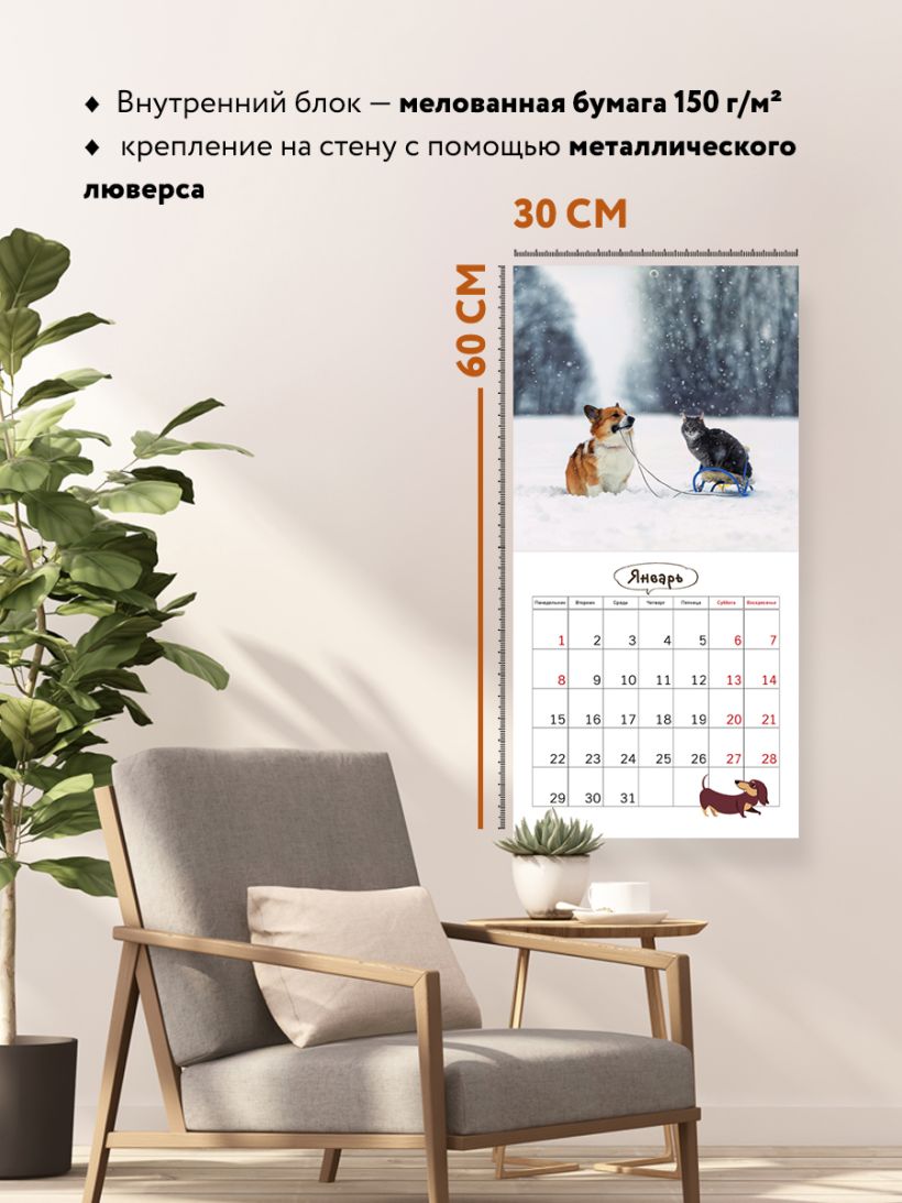 Наши настенные календари отличаются высоким качеством исполнения! Тщательно подобранные иллюстрации, напечатанные на глянцевой бумаге высочайшего качества, станут настоящим украшением дома, а в календарной сетке найдется место для ваших планов: большие клетки позволят делать записи и организовать свой год! В календаре также отмечены все государственные праздники.