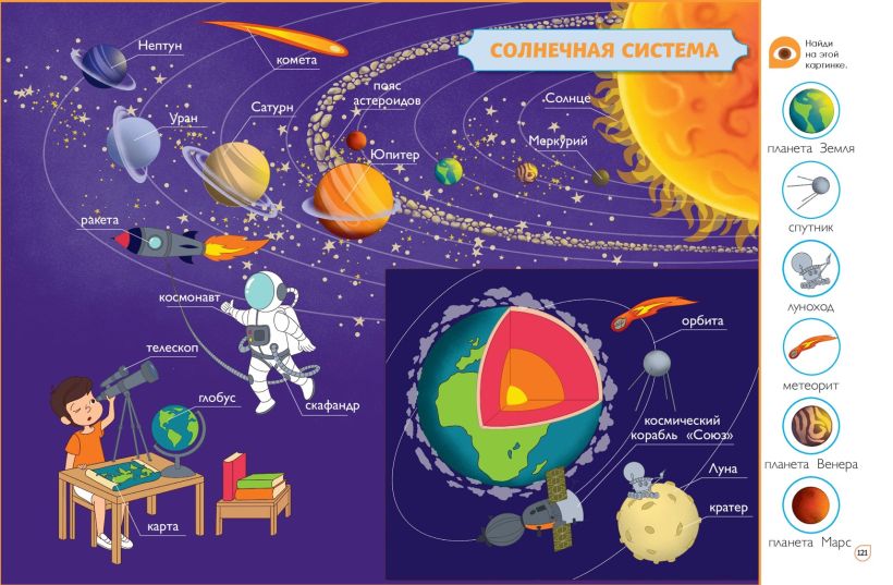 Эта книга не оставит равнодушными ни детей, ни взрослых — она очень красочная и познавательная! Фотообъекты чётко структурированы, начиная с игрушек малыша и заканчивая Солнечной системой. Также мы включили в издание такие интересные главы, как «Йога — подражание животным», «Рекордсмены мира фауны», «Животные в очках», и большие разворотные иллюстрации.