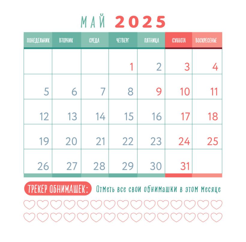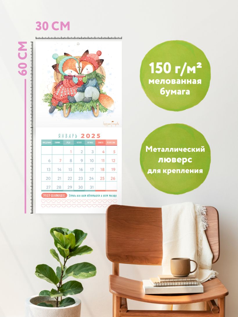 Идеальный календарь для офиса и дома. Высокое качество полиграфического исполнения прекрасно дополняют авторские иллюстрации Екатерины Гончаровой и интерактивный трекер обнимашек.