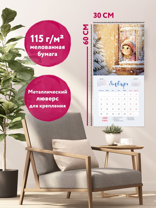 О серии: Наши настенные календари отличаются высоким качеством исполнения! Тщательно подобранные иллюстрации, напечатанные на глянцевой бумаге высочайшего качества, станут настоящим украшением дома, а в календарной сетке найдется место для ваших планов: большие клетки позволят делать записи и организовать свой год! В календаре также отмечены все государственные праздники. В серии настенных календарей издательства «ЭКСМО» каждый найдет тему по вкусу: великие художники, великолепные подборки с самыми знаменитыми произведениями искусства, легендарные кинематографические саги и игры, главные книжные авторы и бестселлеры, фотографии и иллюстрации любимых животных и многое-многое другое! О календаре: Настенный календарь-планер на 2026 год позволит вашей семье не упустить ни одного важного события! Он избавит вас от необходимости держать в памяти даты и время встреч, командировок, родительских собраний, кружков и любых других мероприятий. А красивые и забавные иллюстрации в удобных таблицах будут радовать всю семью целый год! Пользоваться календарем-планером приятно и легко. Внутри — таблица с пятью колонками для записи имен членов семьи, планов и событий, а также дополнительные линейки для особо важных дел или дней рождения. Для кого: Каждый разворот отведен под один месяц, а в конце планера вы найдете страницу для творчества всей семьей и календарь на 2027 год. Технические параметры: - Тип календаря — настенный перекидной. - Год — 2026. - Календарная сетка — с разбивкой по месяцам. - Вид скрепления — скрепка. - Ширина — 30 см. - Высота — 30 см. - Внутренний блок — мелованная бумага 150 г/м2. - Подложка — плотный гофрокартон для поддержания формы. - Индивидуальная упаковка в плотный целлофановый пакет.