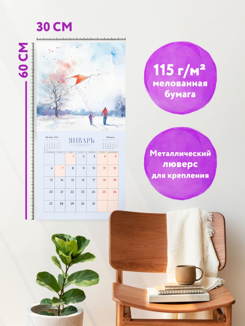 - Тип календаря — настенный перекидной.