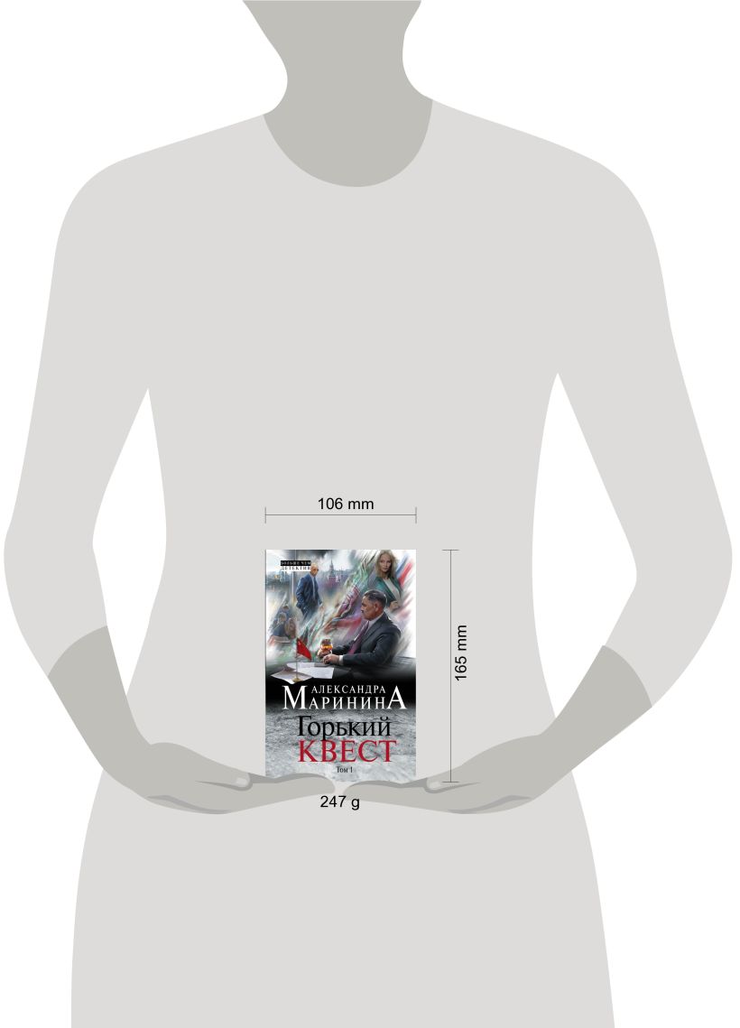 «Горький квест» — это невероятный эксперимент по погружению современных молодых людей в советскую эпоху 70-х годов. Для написания этого произведения Александра Маринина организовала фокус-группы современной молодежи и их реальные реакции описала в книге.