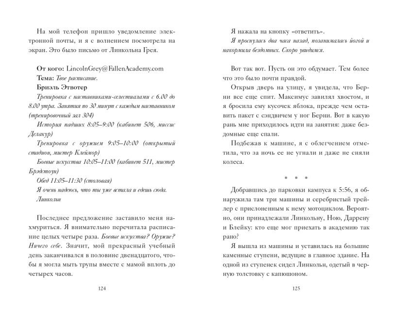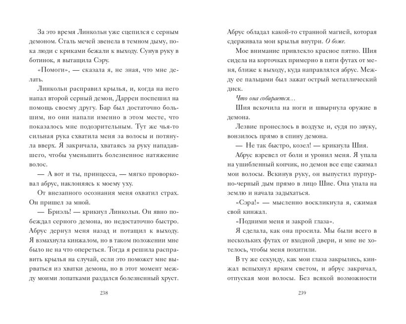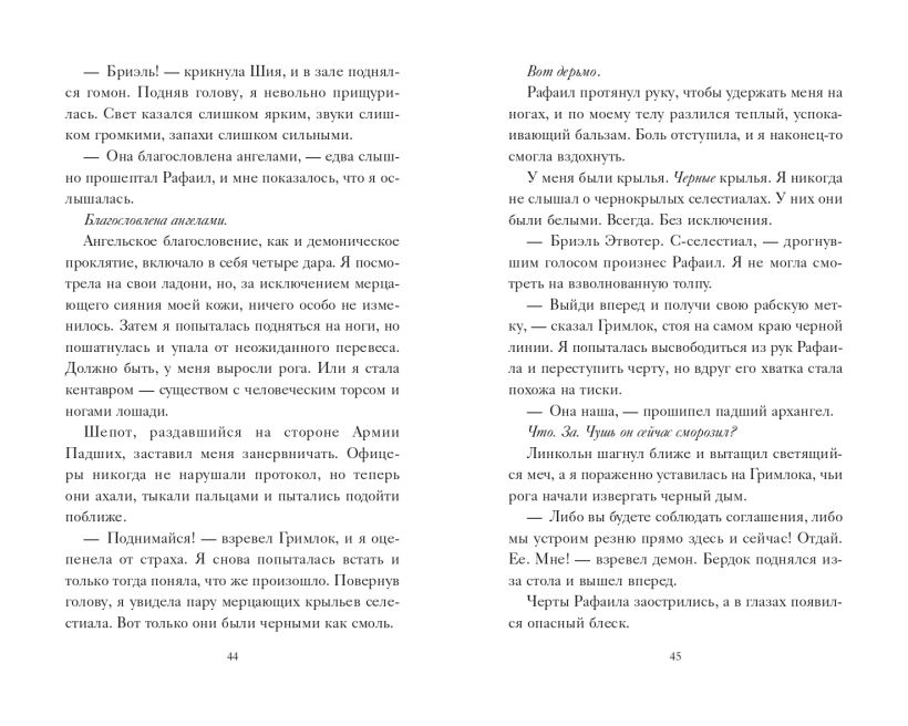 Оказавшись в престижной Академии Падших в Городе Ангелов, Бриэль сразу попадает на обучение к безупречному наставнику Линкольну Грею. В первый же день между ними разгорается вражда, но она не способна заглушить чувства, которые они испытывают друг к другу. Когда Бриэль пытается разгадать, что означает темный цвет ее крыльев, она понимает, что все прояснит лишь встреча с самим… Люцифером.