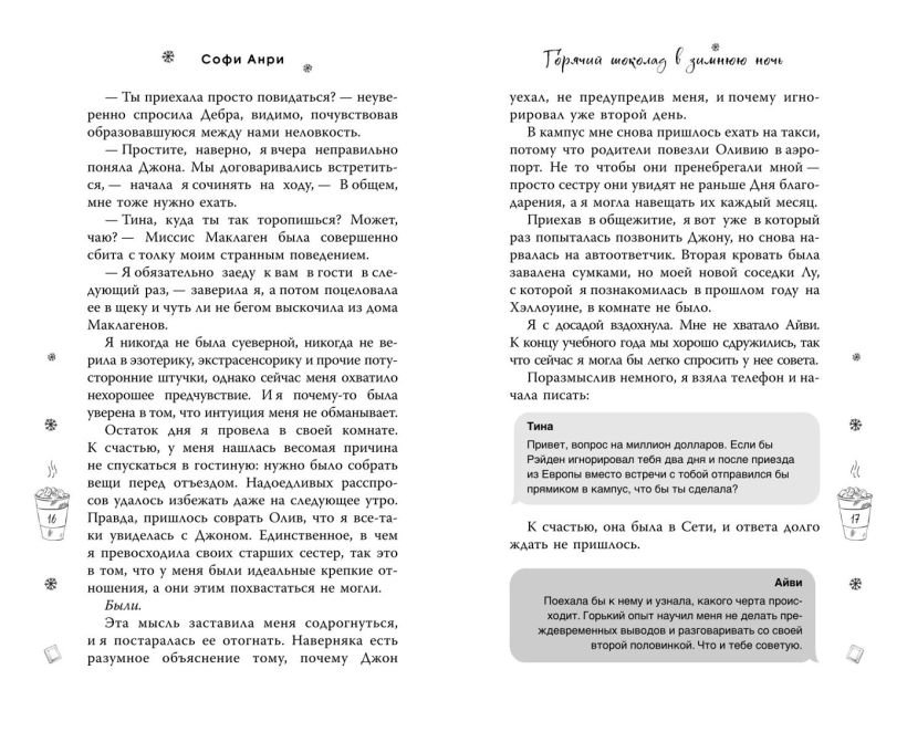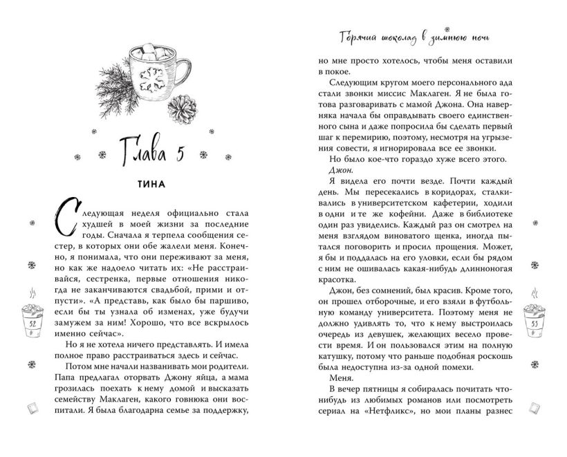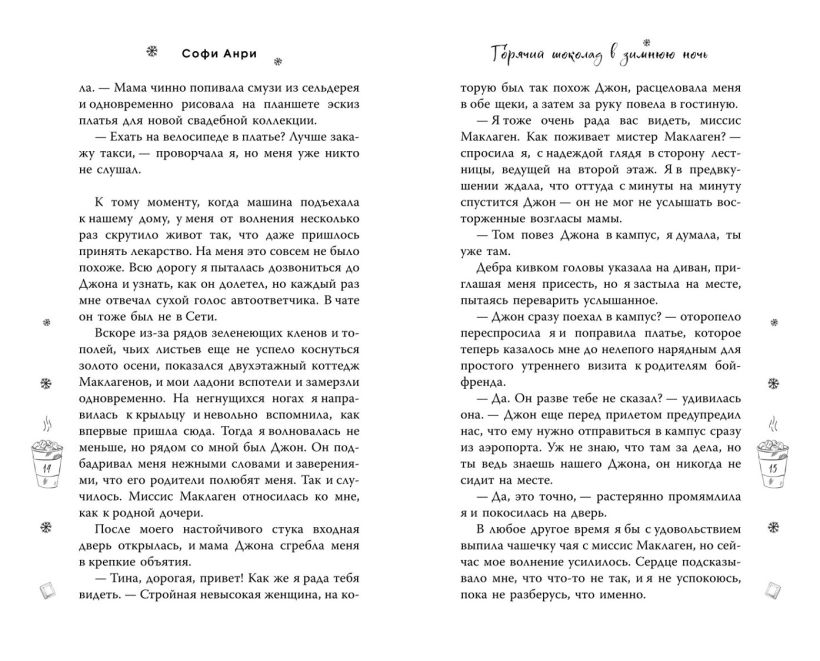 “Горячий шоколад в зимнюю ночь” - это что-то особенное. Знаете, как горячий шоколад в морозный вечер - согревает и обнимает душу. История не такая сладкая, как “Двойной латте в дождливый день”, но в ней есть своя, особенная красота и искренность любви.