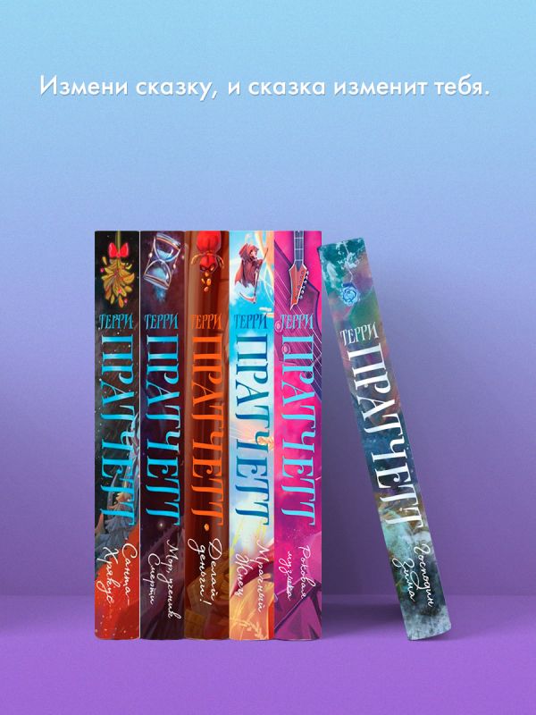 Переиздание знаменитого цикла «Плоский мир» сэра Терри Пратчетта, который стал легендой и классиком ещё при жизни. Оформление суперпопулярной в России художницы и писательницы Полины Граф. Внутри эскизы персонажей, дополнительная полноцветная иллюстрация на разворотной вклейке, рисунки на полях и портрет автора.