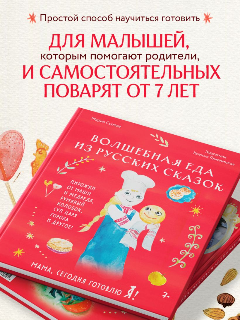 Третья книга от автора бестселлера «Мама, сегодня готовлю я!» Марии Суровой — 33 рецепта из любимых сказок: русских народных и классических авторских. Внутри — как всегда понятные пошаговые рецепты, доступные детям, полезные советы и красивые картинки. А также новинка в серии: для рецептов посложнее — QR-коды, открывающие видеорецепт.