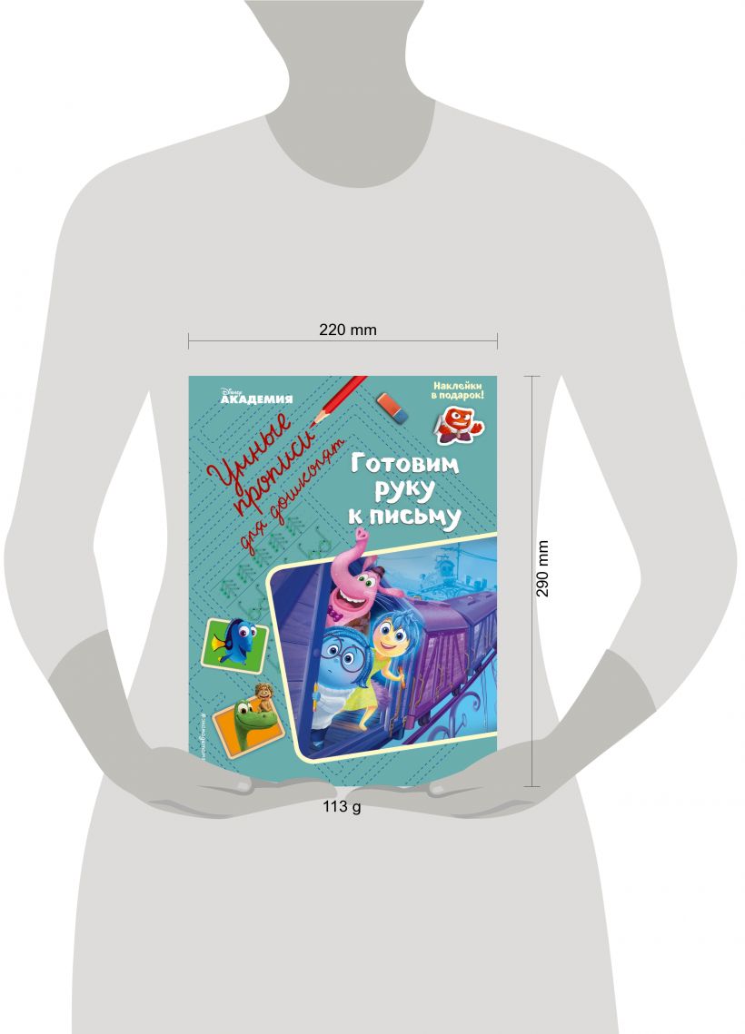 Эти прописи выгодно отличает красочное оформление, способное привлечь и стимулировать к занятиям любого ребёнка, а на помощь ему при выполнении заданий придут герои мультфильмов Disney. Кроме того, уникальность данной серии заключается в следующем: входящие в неё книги охватывают возраст от 3-х до 6-ти лет, составляя в комплексе полный курс подготовки дошкольника к письму и объединяя обучающую (знакомство с линиями, фигурами, буквами и счётом) и развивающую (совершенствование мелкой моторики и тренировка пальчиков) функции. А еще малыш получит в подарок наклейки с персонажами Disney!