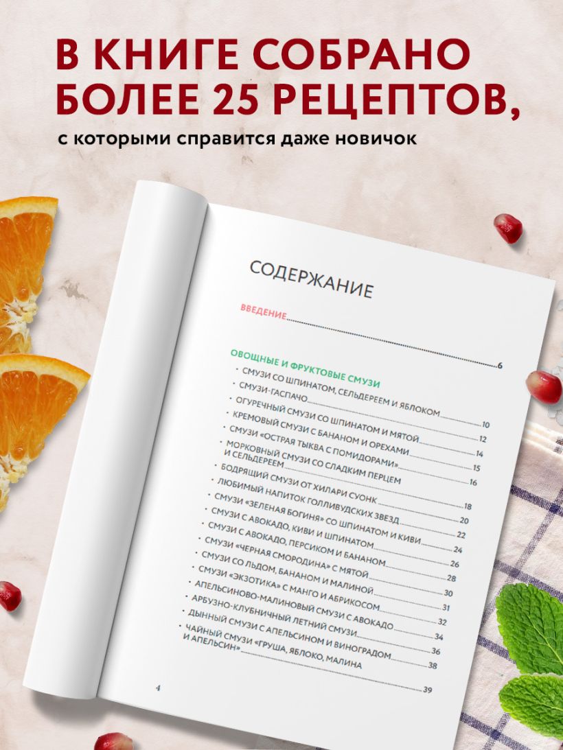 • десятки рецептов смузи на любой вкус: от классических ягодных и фруктовых до оригинальных овощных и зеленых;