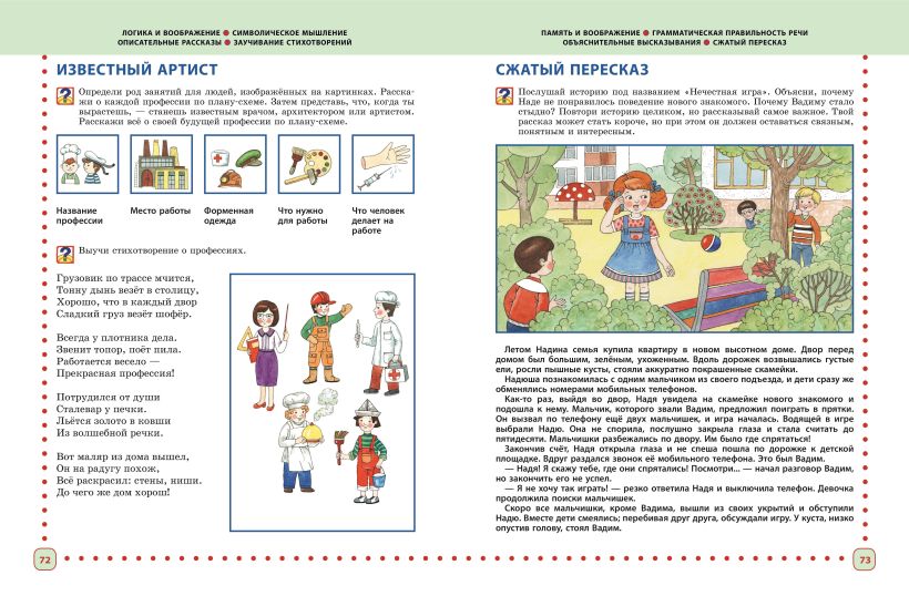 Наиболее полное пособие по системе Ткаченко для подготовки ребенка к школе — расширенный курс по чтению, письму и основам математики. Можно готовиться по нему как отдельно, так и в качестве продолжения после «Курса маленького отличника 5—6 лет». Разноплановые задания позволят ученику закрепить ранее пройденный материал и усовершенствовать навыки. Эта книга, несомненно, настольный помощник всех родителей и логопедов. Она доказывает, что учиться можно с удовольствием!