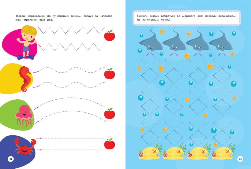 Нейропрописи включают в себя графические задания, способствующие развитию межполушарных связей и мелкой моторики. Методика, использованная в пособии, учитывает нейропсихологические методы обучения и гарантирует высокий результат. Все задания доступны и разнообразны, что позволит дошкольнику менять виды деятельности и не уставать. Пособие имеет очень четкую структуру: в одном занятии имеются задания, направленные на развитие навыков пространственной ориентации на листе бумаги и на клетчатом поле. Занимательные картинки, увлекательные задания на раскрашивание, дорисовывание и рисование по точкам, штриховку, прохождение лабиринтов, обведение линий по пунктиру двумя руками одновременно активизируют мозговую деятельность, помогут укрепить пальчики дошкольника, будут способствовать развитию координации руки и глаз, и, следовательно — профилактике дисграфии. Кроме того, занимаясь, ребенок сможет потренировать моторную память и произвольное внимание, станет более усидчивым и аккуратным. Книга издательства «Эксмо» адресована ответственным родителям и педагогам, занимающимся подготовкой детей к школе.