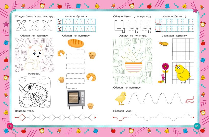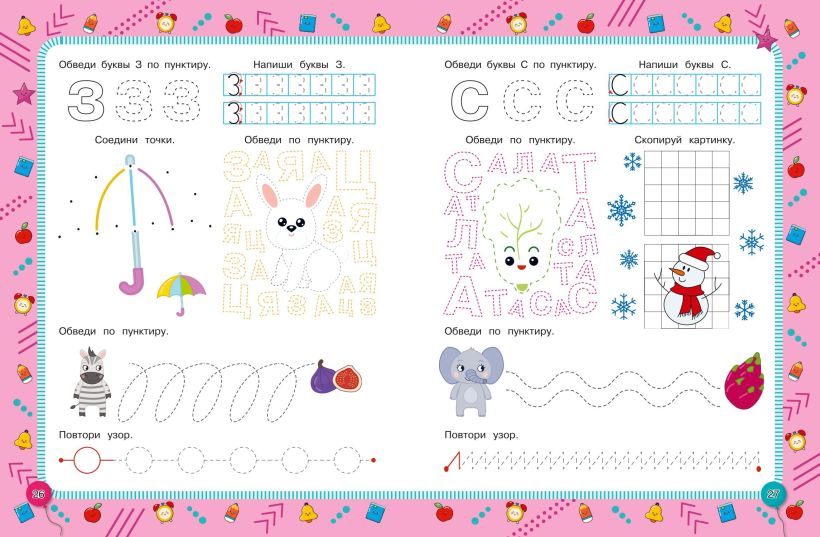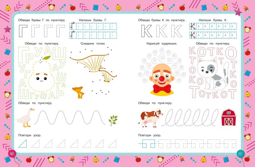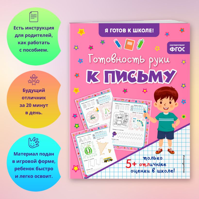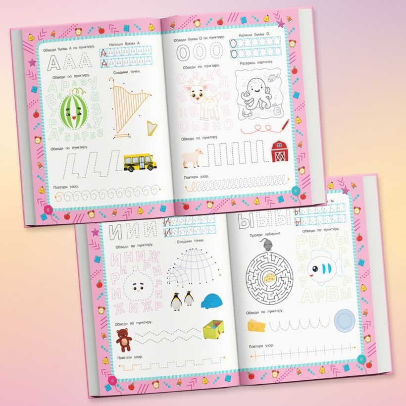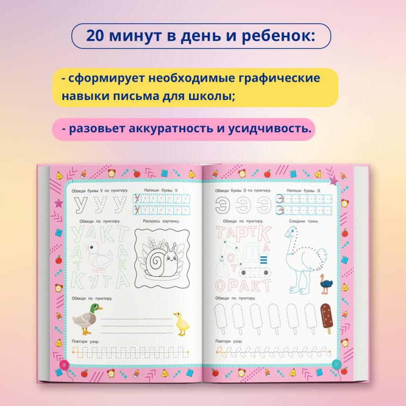 Выполняя большое количество разнообразных занимательных заданий, ребёнок будет обводить пунктирные линии, соединять точки, дорисовывать узоры, раскрашивать, штриховать, обводить и писать печатные буквы, проходить лабиринт и таким образом сможет укрепить мышцы руки и развить мелкую моторику в процессе увлекательной игры. Кроме того, благодаря этой книге дошкольник потренирует память, воображение и другие когнитивные функции, станет более уверенным, усидчивым и аккуратным.