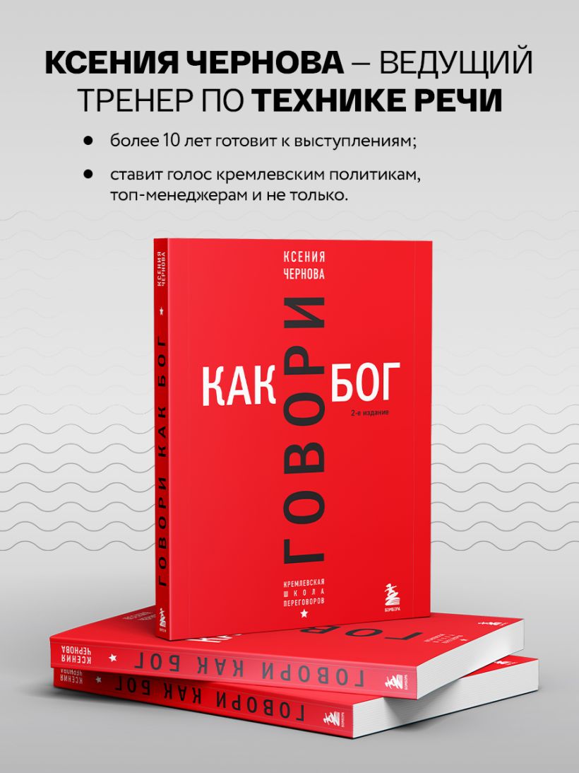 Ксения Чернова — ведущий тренер по технике речи, более 10 лет готовит к выступлениям и ставит голос кремлевским политикам, топ-менеджерам и собственникам компаний «Газпром Нефть», «Вымпелком», Microsoft, Dior, Infowatch, «Снежная королева», «1С: Бухгалтерия» и др.