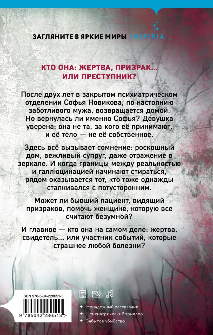 После двух лет в закрытом психиатрическом отделении Софья Новикова, по настоянию заботливого мужа, возвращается домой. Но вернулась ли именно Софья? Девушка уверена: она не та, за кого её принимают, и её тело — не её собственное.