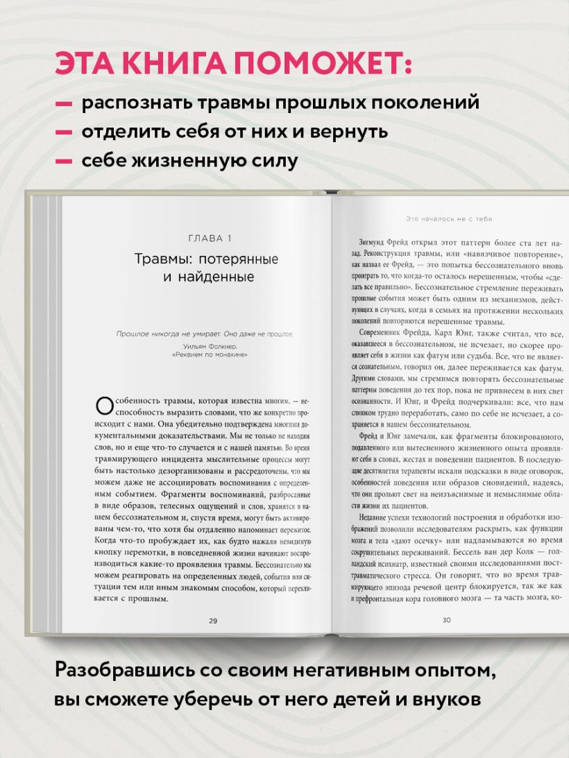 Плюсы: Рассказ ведётся как на основе психологии чувств, эмоций, так и на основе биохимии. Например, если ваши мама или бабушка испытали стресс, у них зашкаливал кортизол какое-то время, то это сказывается на генах, которые передаются детям и внукам, а у тех в свою очередь, кортизол сильно понижен. Из-за этого повышенная тревожность может сопровождать потомков чуть ли не с самого рождения. Описано все понятно, даются задания на практику, много примеров из работы автора и книга не в 500 страниц. Читается легко и быстро.
