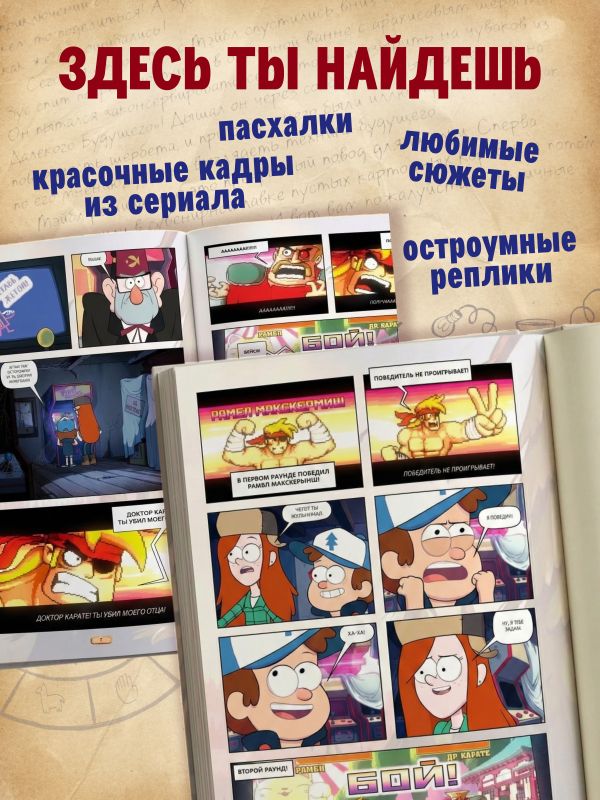 Чем хороши кинокомиксы по любимым сериалам? Тем, что с книгой ты можешь насладиться любимыми эпизодами в другом формате! А значит, увидеть своих героев в другом свете - теперь 10, 11 и 12-я серии первого сезона "Гравити Фолз" в книге кинокомиксов с кадрами из сериала!