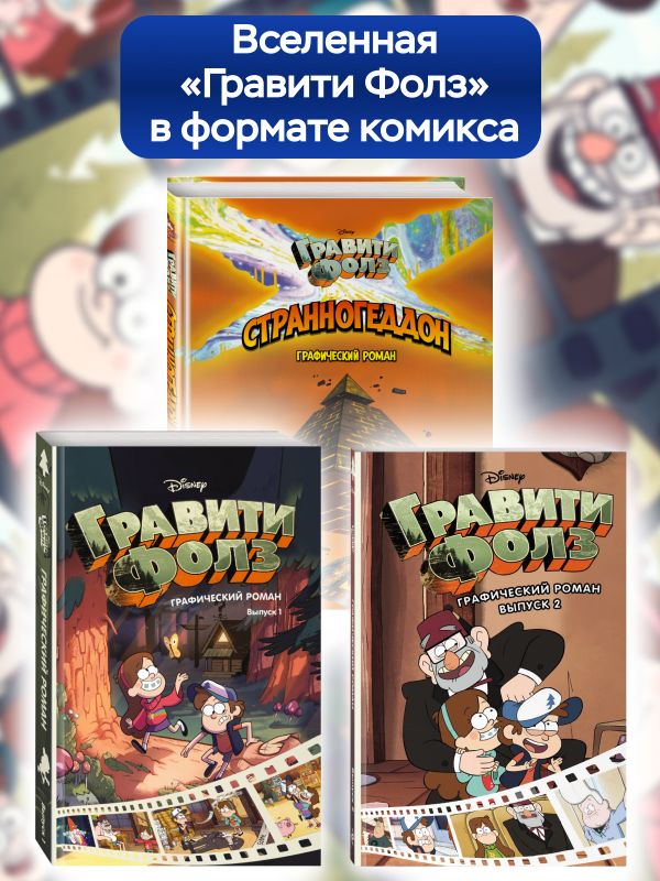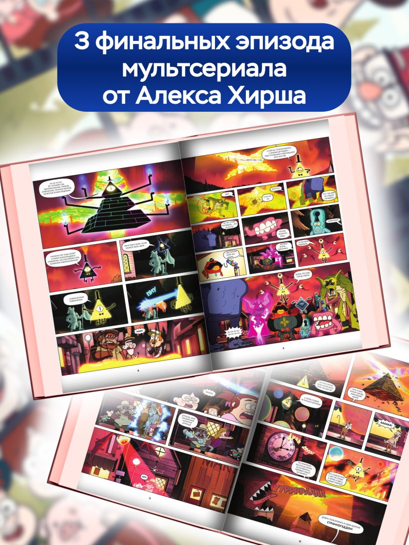 В новом графическом романе — самая динамичная из всех историй Гравити Фолз — история о невероятном сражении Пайнсов и их друзей с бандой Билла Шифра. На кону — любимый Гравити Фолз и вообще вся реальность этого мира! Кто победит? Узнаем на последних страницах графического романа.