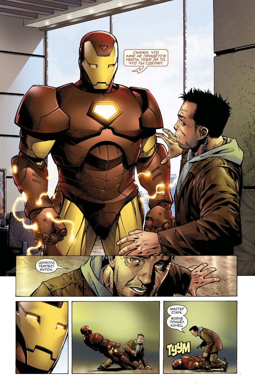 Гражданская война идёт полным ходом, и Мстители вынуждены сражаться! Каждый – за то, во что верит. Исход этой битвы вас поразит. Капитан Америка в бегах! Женщину-Паука преследуют обе стороны конфликта! Железный Человек вынужден предать своих друзей! И всё становится только хуже, ведь выясняется, что новая угроза куда ближе, чем ему казалось! Настоящие суперзвёзды индустрии рисовали по выпуску этого тома, каждый из которых – отдельная история с участием Капитана Америка, Кейджа, Женщины-Паука, Часового и Железного Человека! Гости выпусков: Сокол, Джессика Джонс и Нелюди!
