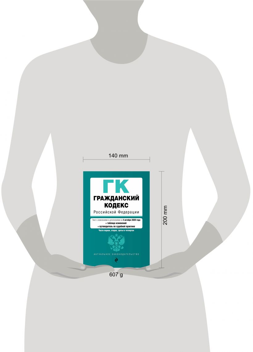 Настоящее издание содержит текст Гражданского кодекса Российской Федерации с изменениями и дополнениями на 4 октября 2020 года с удобной навигацией, таблицей изменений и путеводителем по судебной практике. Если есть изменения, вступающие в силу позднее, то вместе с редакцией нормы, действующей на эту дату, приводится норма в новой редакции и указывается дата, с которой она вступает в силу.