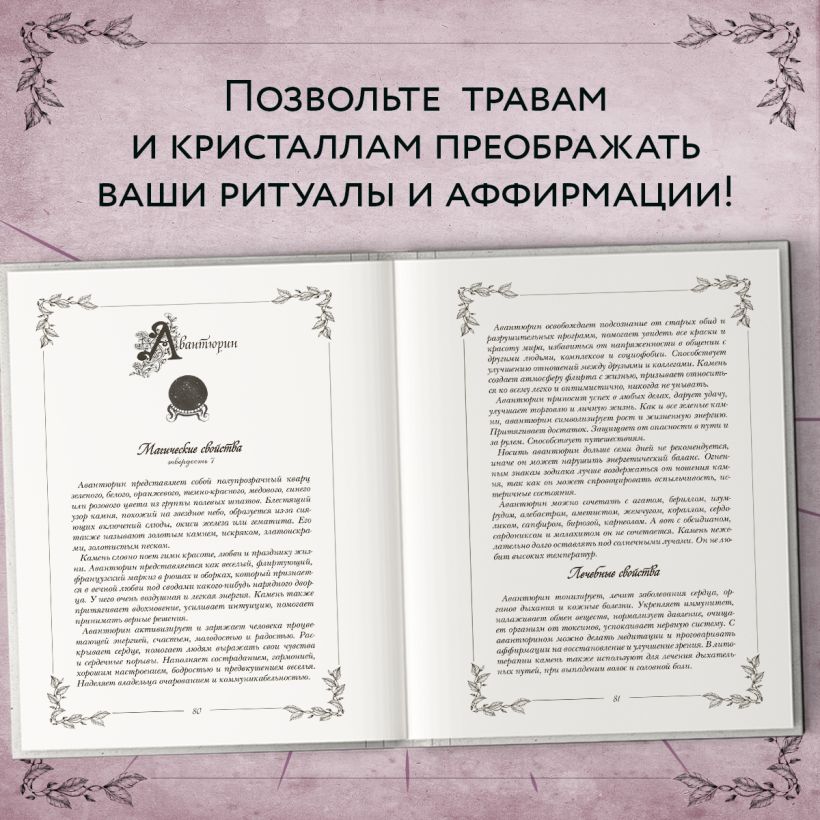Приятно удивило еще то, что автор использовала в книге свой авторский алфавит в названиях трав и камней. Ну, а наличие магических ритуалов и места для своих мыслей и пометок наполняет книгу, и вправе заявить о себе, как личный дневник.