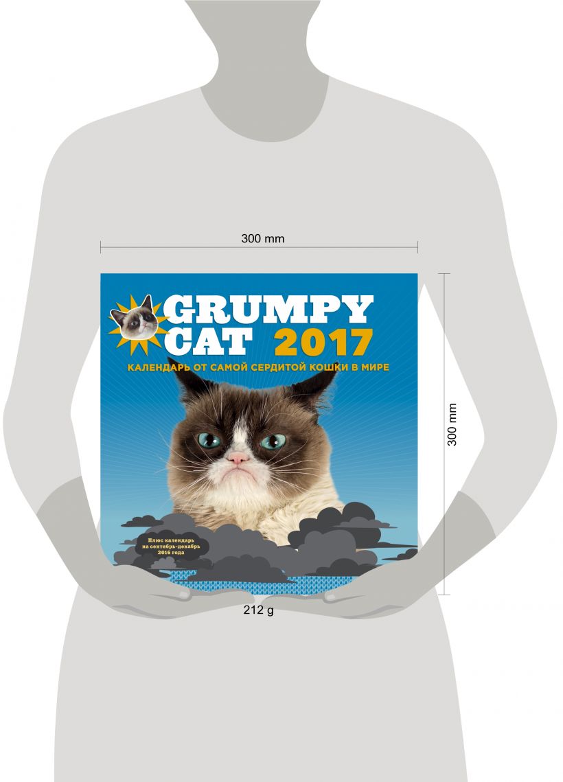 Что это такое Обыкновенный настенный календарь с необыкновенным содержанием - известными на весь мир демотиваторами от великолепной и мрачной Grumpy Cat. Кто главный герой Grumpy Cat («Сердитая кошка»), известная в России также под именами «Сердитый кот», «Мрачный кот» и даже «Грустный кот» - самая известная кошка Интернета. Свою популярность она приобрела благодаря забавной мордочке с вечно сердитым выражением, в котором «виноват» неправильный прикус. Однажды хозяева разместили фото кошки на сайте, и оно пошло «гулять» по Интернету в сопровождении остроумных подписей, которые стали придумывать пользователи по всему миру. Сейчас у кошки миллионы поклонников по всему миру. Для кого этот календарь Несомненно, для всех поклонников Grumpy Cat. Для любителей котиков всех пород и мастей. Для истинных пессимистов. Для всех, кто устал, недоволен жизнью и разочарован и кому нужен «волшебный пендель» для того, чтобы прийти в себя и обрести правильный взгляд на жизнь. Для тех, кто ценит здоровое чувство юмора и не боится смеяться над собой. И для тех, кто ищет небанальный и остроумный подарок. Фишки Больше новых фото и абсолютно новых фраз-демотиваторов Рекомендуется приобрести вместе с: «Grumpy Cat. Самая сердитая книга от самой сердитой кошки в мире» - подлинным кладезем юмора и оптимизма (простите, пессимизма).