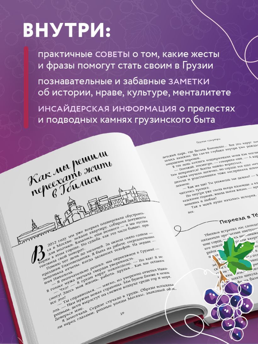 Лиля Гоголадзе вышла замуж за грузина, выучила язык, стала мамой троих сыновей и нашла свое призвание в Тбилиси. В книге «Грузия изнутри» она делится личным опытом, забавными ситуациями, культурными открытиями и семейными историями — с иронией, светом и любовью.