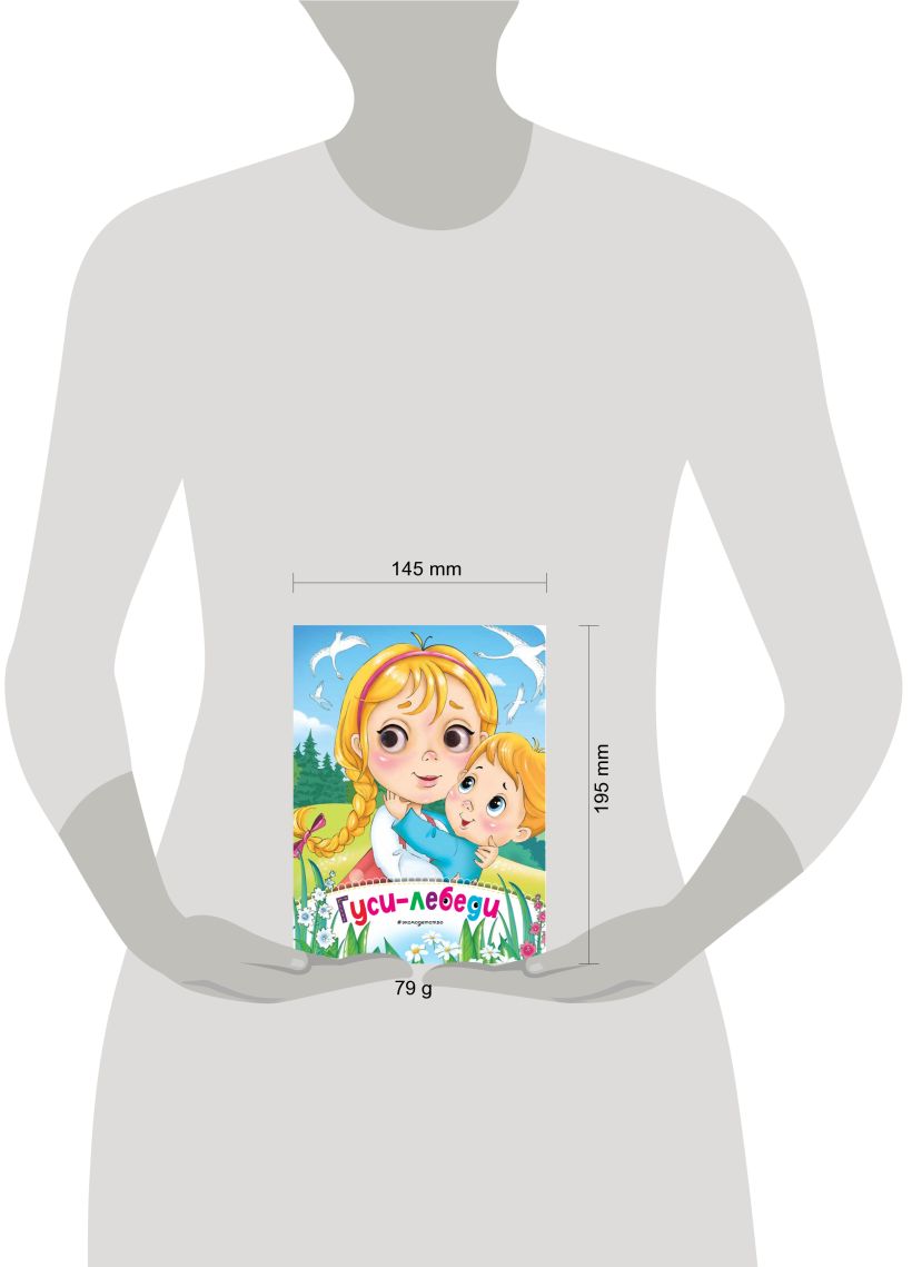 Русская народная сказка «Гуси-лебеди» представлена в самом удобном для малышей формате — прочные картонные страницы, закруглённые края, красочные иллюстрации. А чтобы ребёнку было ещё интересней знакомиться с историей, на каждом развороте у героя есть подвижные пластиковые глазки.