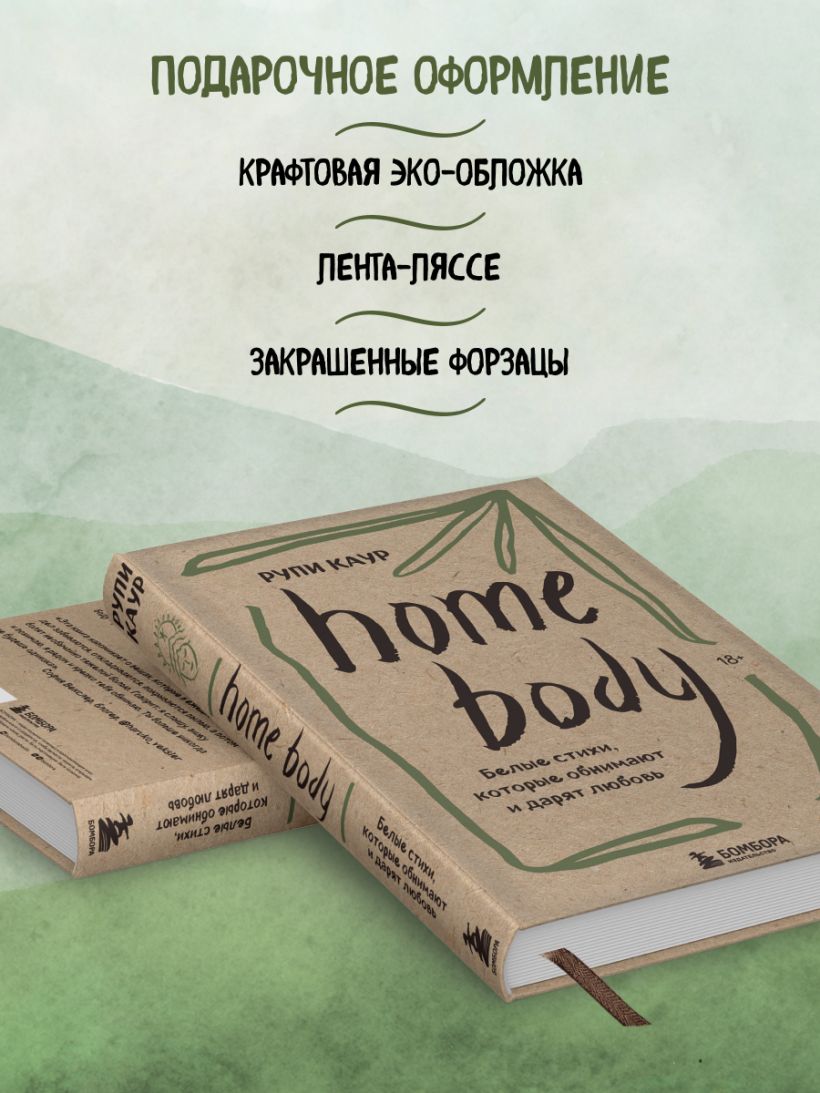 «home body» – третий сборник поэзии, в котором Рупи Каур пишет о том, что волнует, но часто не произносится вслух: о любви, женственности, одиночестве, потерях, душевных травмах, исцелении. С каждой страницей вы словно снимаете с себя оковы прошлого, мешающего жить, чтобы обрести внутреннюю свободу и расправить крылья.