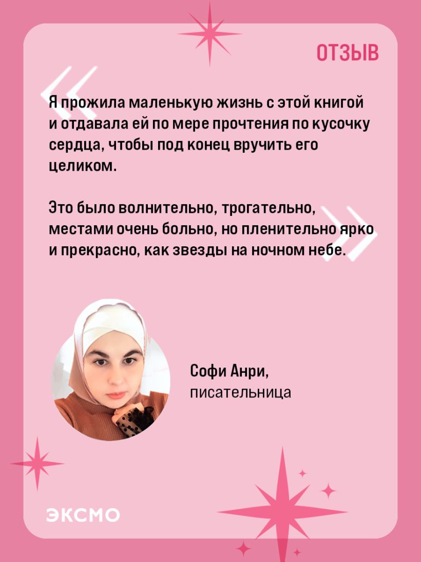 «Я прожила маленькую жизнь с этой книгой и отдавала ей по мере прочтения по кусочку сердца, чтобы под конец вручить его целиком. Это было волнительно, трогательно, местами очень больно, но пленительно ярко и прекрасно, как звезды на ночном небе». — СОФИ АНРИ, писательница