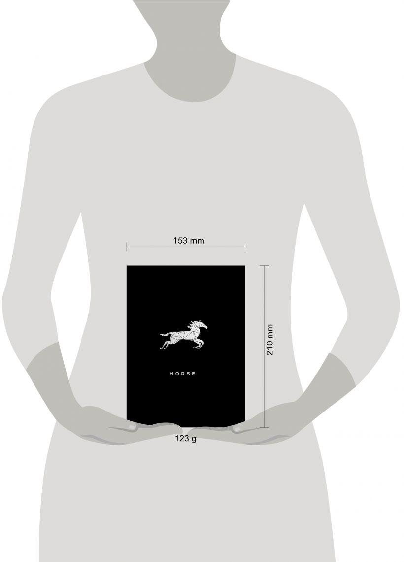 Тетрадь общая «Horse» представлена в формате А5, подойдет как школьнику, так и студенту. Обложка тетради выполнена из картона и декорирована серебренной фольгой. Блок выполнен из офсетной бумаги и состоит из 96 страниц, соединен металлическими скобами. Скругленные уголки, накидка на блок в дизайн обложки! Такой дизайн придется по душе всем, кто ценит минимализм и классику.